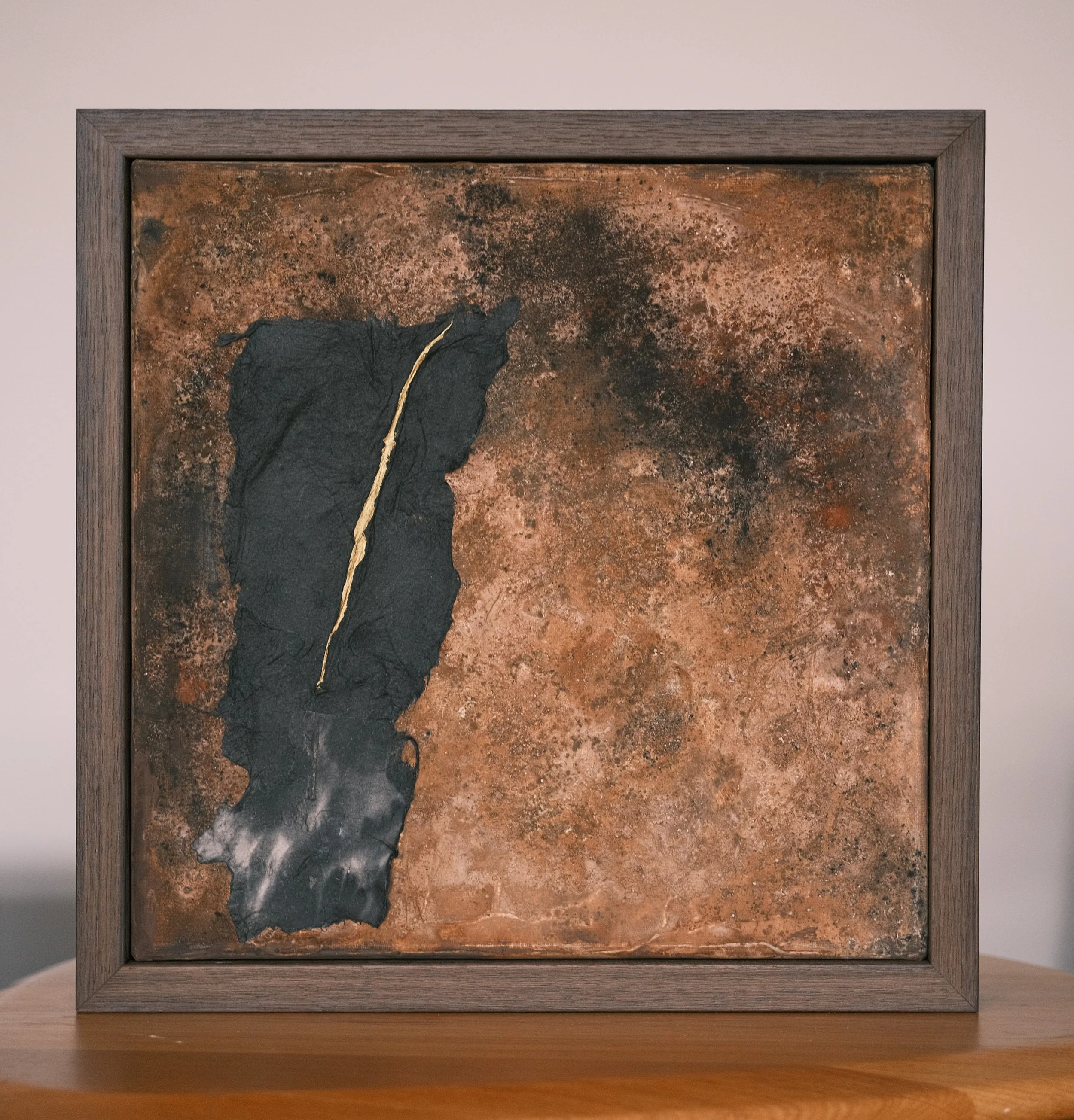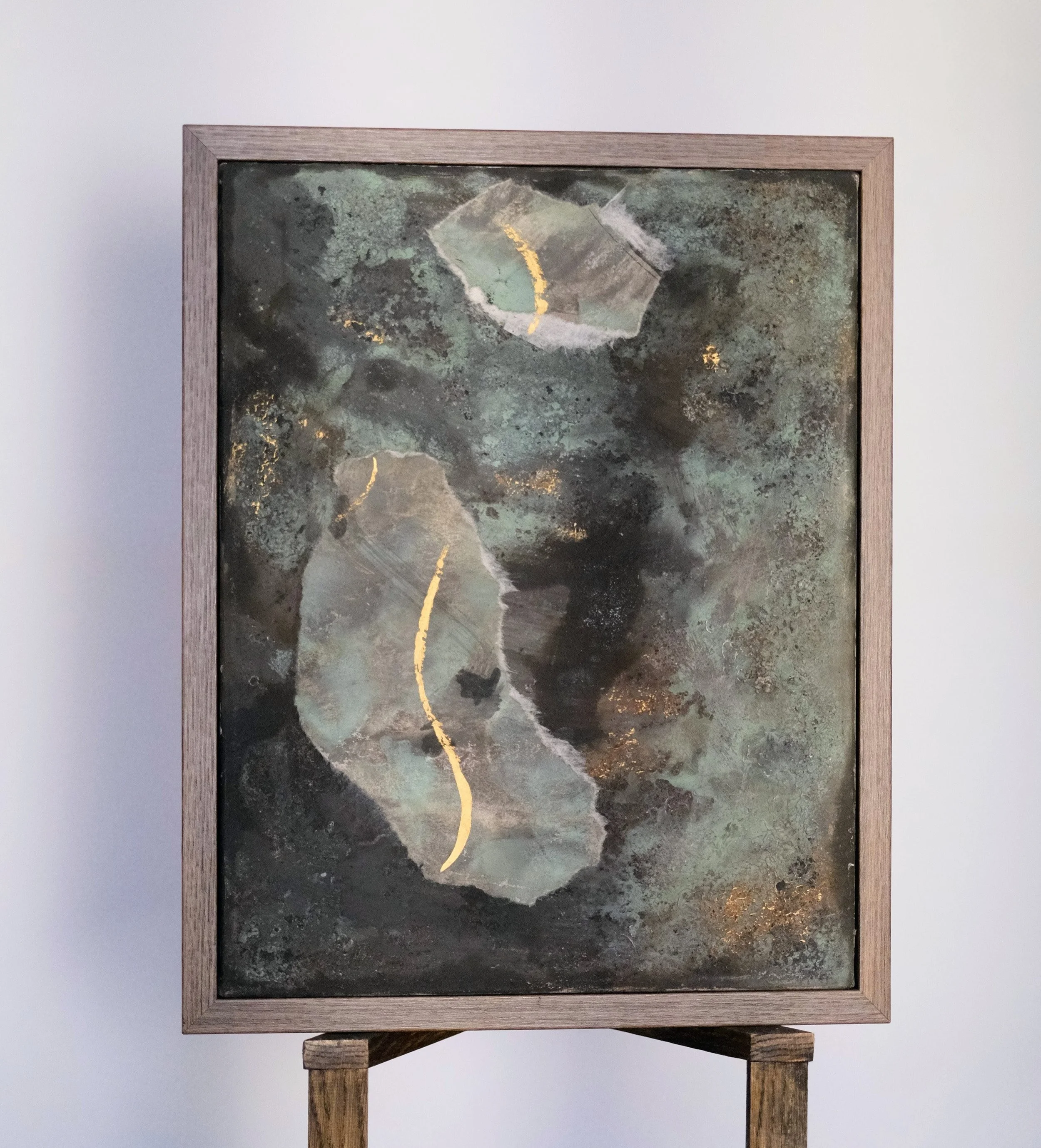 Mixed media on canvas, framed in dark wood, signed and dated on verso.